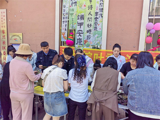 端午将至,为弘扬中华优秀传统文化,促进邻里交流,营造温馨和谐的节日氛围,5月28日,东宁市东兴社区新时代文明实践站联合“大党委”共建单位和东宁市光明派出所开展“端午道安康 幸福粽飘香”主题活动。
