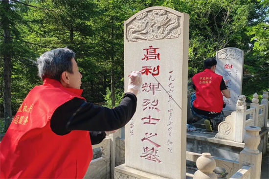 3.传递爱心,传播文明。组织志愿者服务队,积极参与残联、社区等部门的爱心帮扶活动,如:“走进共建社区清理小广告及卫生死角”、“为共建社区清理积雪”等,同时每年都组织开展“让历史永不褪色,让烈士纪念碑再放光彩”志愿服务活动,为烈士墓描碑文,使烈士陵园内135个烈士墓碑焕然一新,用实际行动重温对烈士精神的敬仰,让烈士的名字更加闪亮,用实实在在的行动传播着“奉献、爱心、互助、进步”的精神。