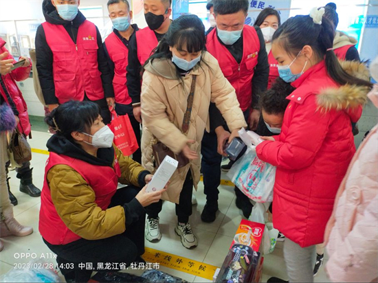 活动现场,志愿者和民政局工作人员为前来参加活动的孩子送上了八宝粥、书包、笔袋、雨伞、保温杯、防疫口罩、洗衣液、洗涤精、学习生活文具等慰问品,详细了解他们的日常生活和学习情况,主动帮助孩子们解决遇到的困难,鼓励他们自立自强、刻苦学习。前来参加活动的省优秀志愿者李玉文、龙江好人张国涛等志愿者和爱民区民政局工作人员还与困境儿童达成“多对一”“一对一”的结对帮扶,成为孩子们的成长守护人。