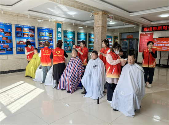 青年志愿者们在理发前,认真询问老人的需求,根据他们的喜好和要求设计发型,精心修剪。志愿者一边与居民拉家常,一边巧手翻飞,现场欢快温馨,其乐融融,热情周到的服务让辖区老人们感受到了浓浓的关怀。居民们看着被修剪的干净利落的头发,脸上绽放着幸福的笑容,不时感叹:“不用花钱去理发店,在家门口就能剪发,谢谢你们呀!”