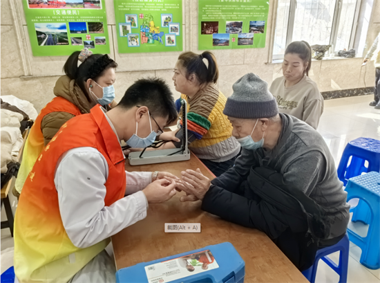 市人民医院医生为老年人测量血压,免费检查,倾听他们的生活经历与困难,了解他们的日常起居,提供个性化的健康建议。根据血压测量结果,医生会给予健康饮食和生活习惯方面的指导,提醒社区居民在季节交替时注意保暖,保持良好的作息习惯。同时,强调了及时就医的重要性,鼓励社区居民发现身体问题时主动寻求专业医疗帮助,以确保身体健康。
